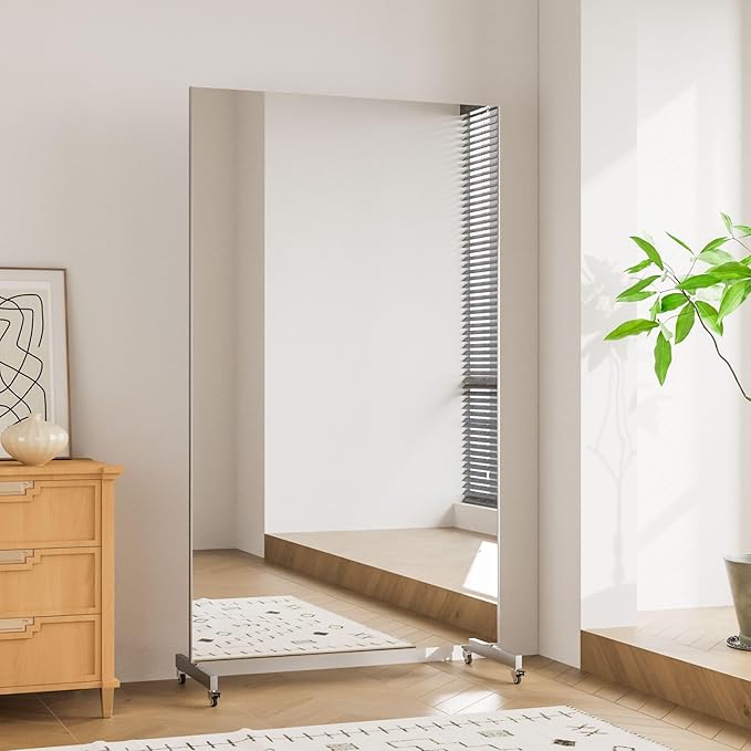 - 360° Mobility with Locking Stands: Large gym mirror with Stands features smooth-rolling casters for effortless 360° repositioning. Locking mechanisms secure it in place on any floor surface – ideal for dynamic spaces like gym mirrors or dance studios True-to-Life Reflection: Full body mirror with optical grade glass delivering razor-sharp, distortion-free imaging – see yourself with zero warping, ghosting, or blurring for accurate styling, fitness checks, or dance rehearsals