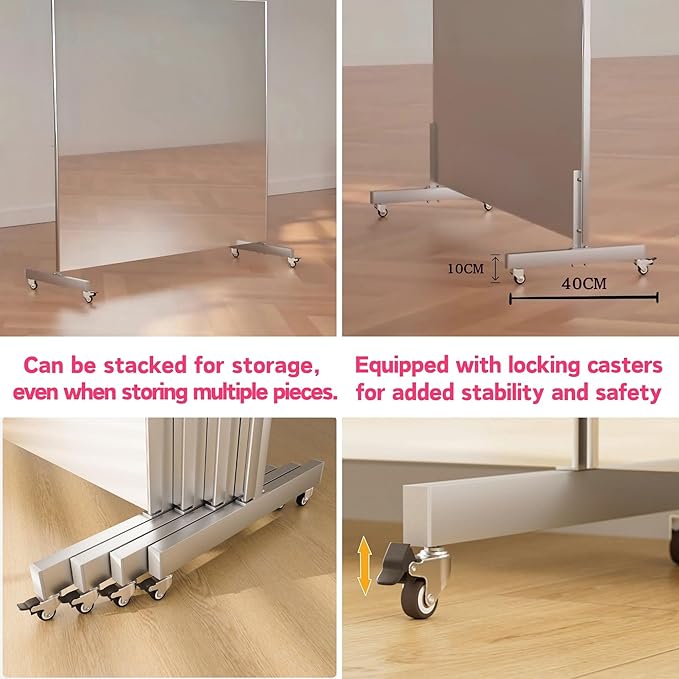 - ✅【Ultra-Lightweight, Even in Oversized Formats】Weighing only about 1/5 of a traditional glass mirror, it can be easily moved and installed by one person. Equipped with casters, it can be conveniently used in various locations to suit your needs.