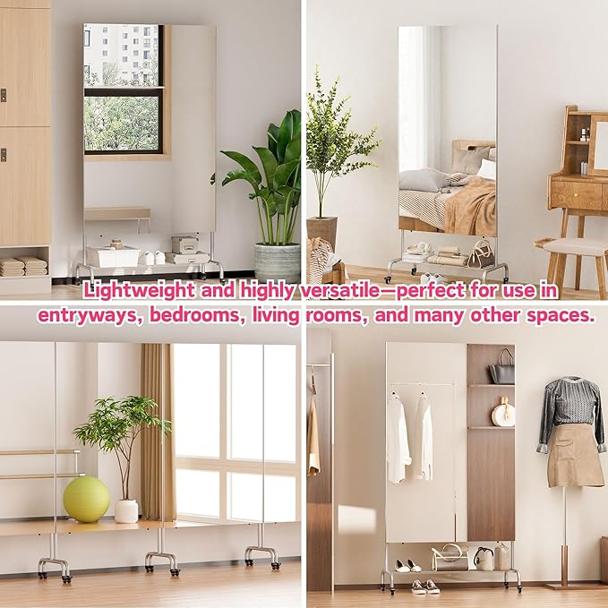 - ✅【Shatterproof & Ultra-Safe Design】This full-length mirror is made entirely without glass, eliminating the risk of dangerous shards. Perfect for homes with children, high-traffic areas, and active environments like gyms or dance studios—complete peace of mind in every use.