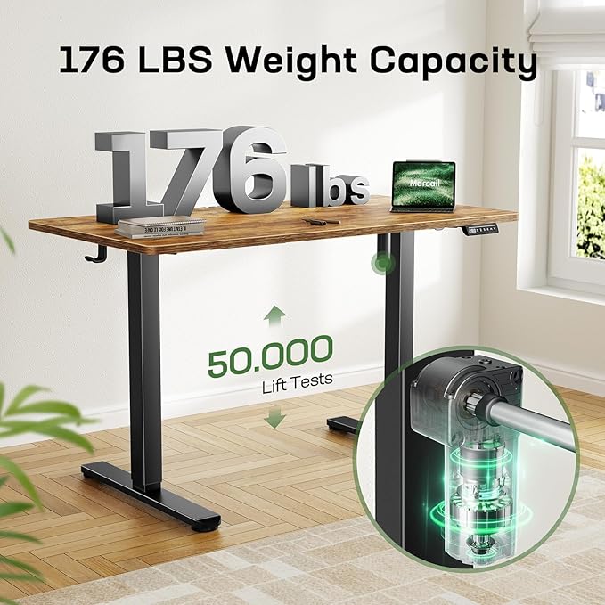 - Strong Steel Construction: This electric standing desk is designed with a heavy-duty steel frame that can support up to 176 lbs of weight. The office desk’s motor has been tested to withstand 50,000 lift cycles to ensure exceptional reliability and long-lasting performance. The product is shipped in two separate packages, with one package containing the tabletop and the other containing the frame