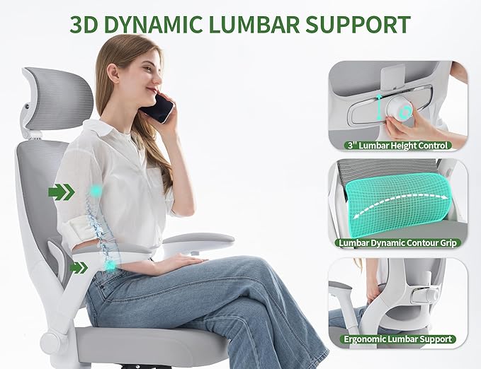- CUSTOMIZABLE ERGONOMIC SUPPORT: Achieve optimal posture with this office chair ergonomic desk chair featuring fully adjustable components, including a 3D headrest and 2D lumbar support that provides dynamic back support. The 2D armrests and recline function deliver all-day comfort, making this silla ergonómica an ideal choice for professional and home office environments