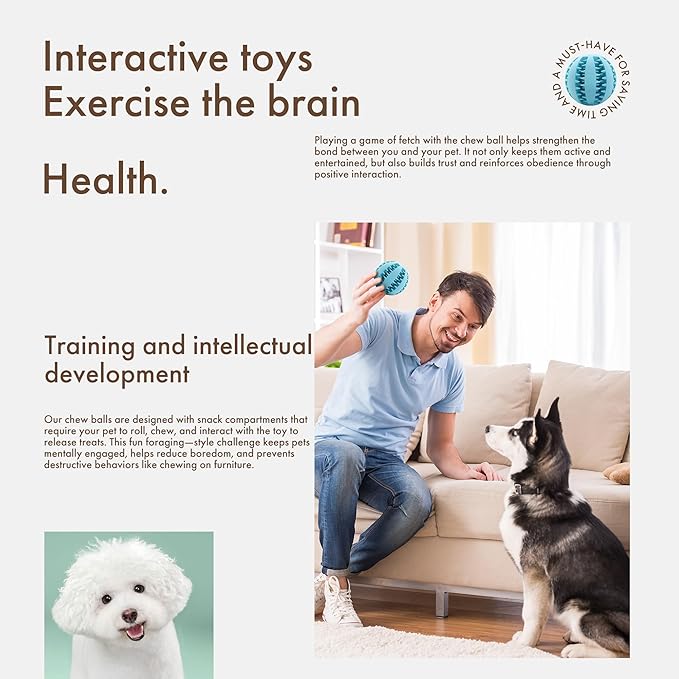 Mira's Pocket Engaging Treat-Dispensing Chew Ball for Dogs - Natural Rubber Puzzle Toy for Teething, Boredom & Dental Health (Blue & Yellow, Large) (Blue & Yellow, Small)