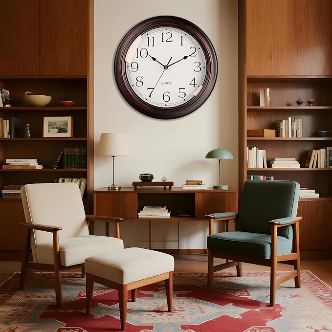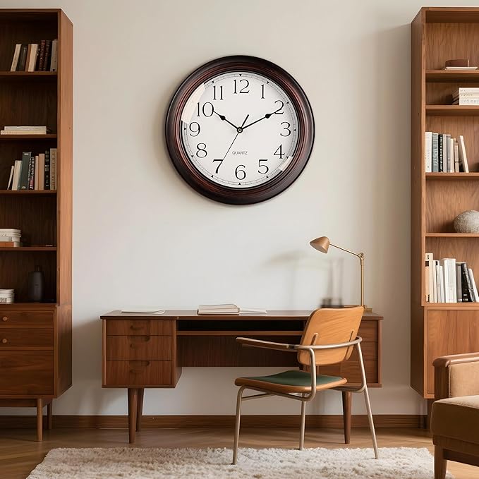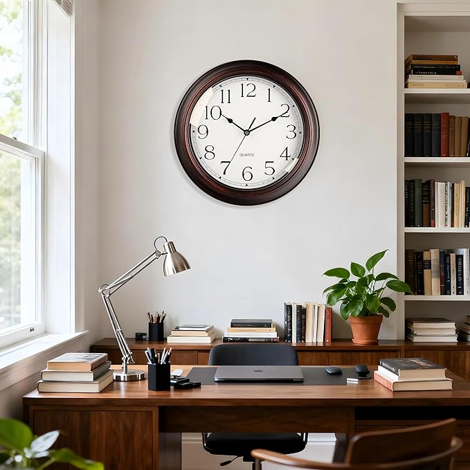 16 Inch Wall Clocks Battery Operated Silent Non-Ticking Wall Clock Vintage Retro Rustic Style Decorative for Living Room Kitchen (Bronze)