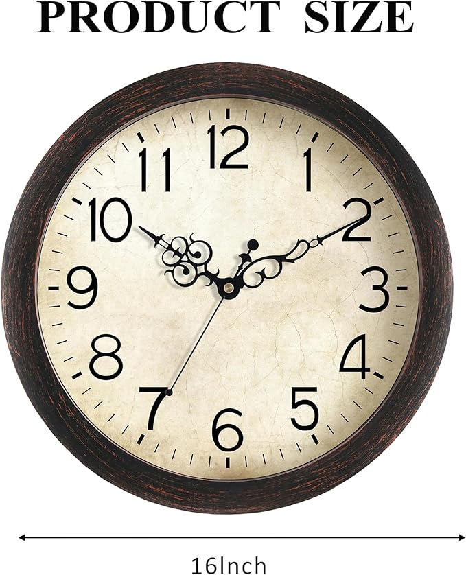 Wall Clock, Vintage Wall Clocks Battery Operated Quartz Silent Non-Ticking 16 Inch Retro Rustic Style Clock Decorative for Kitchen,Bathroom Home Office (Bronze)