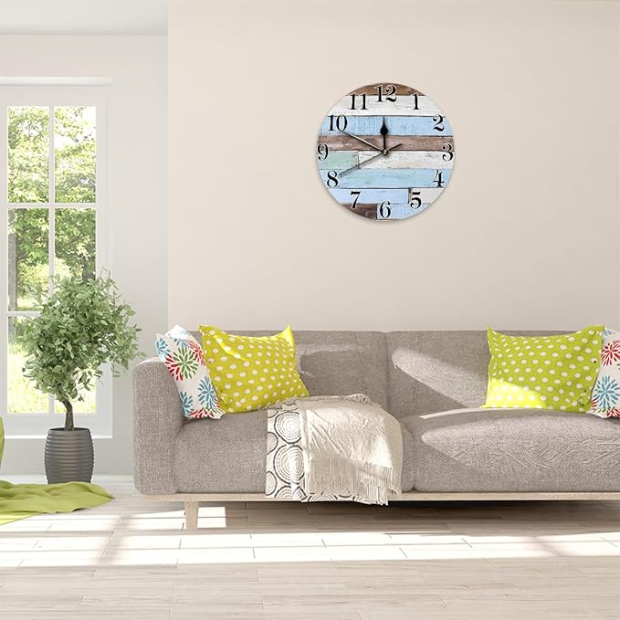 Rustic Coastal Country Wooden Wall Clock Battery Operated 10 in Round Wall Clocks Slilent Non Ticking Quartz Analog Clock for Bedroom Kids Living Room Classroom Decor