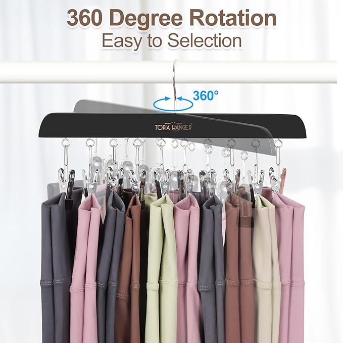 - Easy to Find and Pick up: 360°rotating hook design allows you rotate the hanger to find your clothes easily, and also the neat hooks and clips make the clothes in orderly allow you easy to hang and pick up your clothes