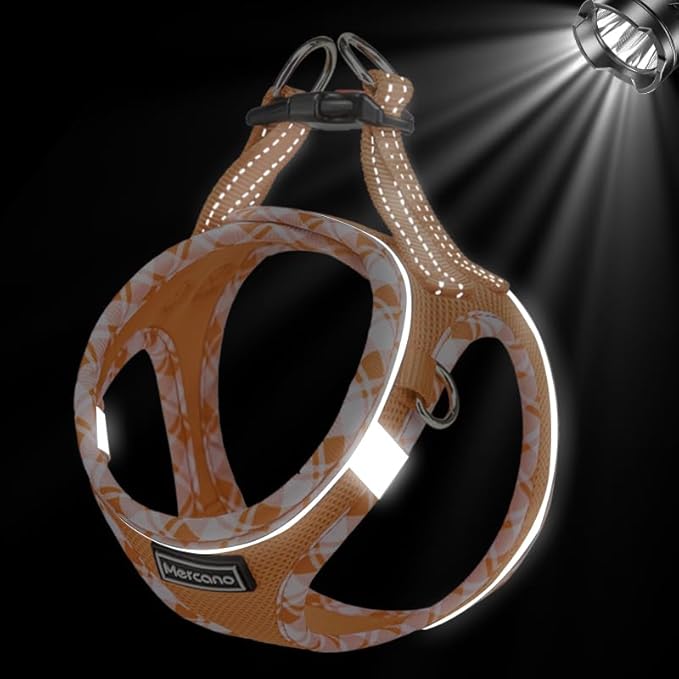 Mercano Soft Mesh Dog Harness and Leash Set, No-Chock Step-in Reflective Breathable Lightweight Easy Walk Vest Harnesses with Safety Buckle for Small Dogs, Cats (Orange, L)