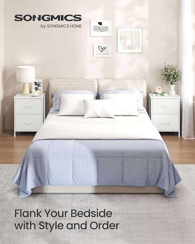 SONGMICS Dresser for Bedroom, Chest of Drawers, Nightstand, Steel, MDF, 2 Non-Woven Fabric Drawers, Storage Organizer Unit, Closet, Entryway, Cloud White and Snow White ULGS312W01S