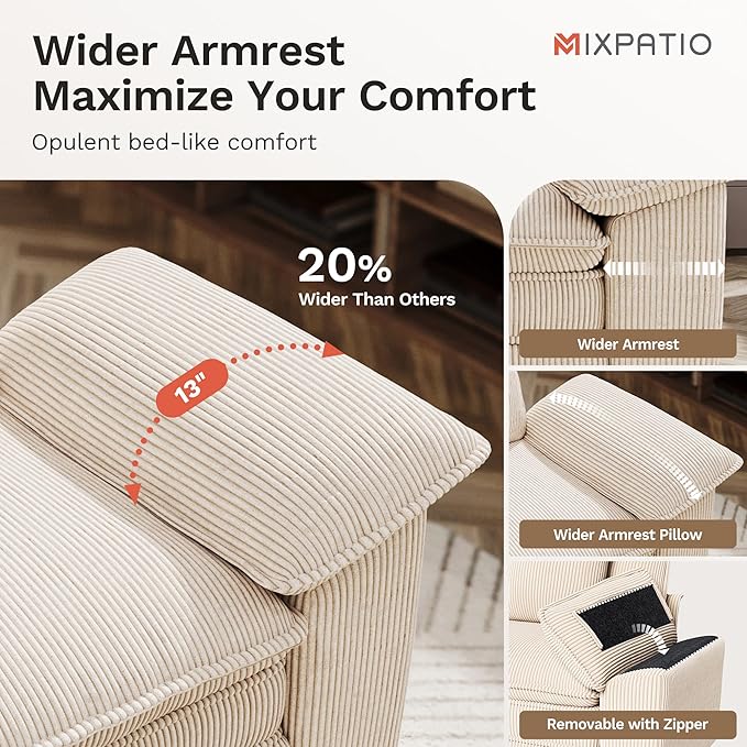Cloud Couch Sectional Sofa Set, Plush 24.4-Inch Deep 7-Seat Sectional with Velvety Corduroy & Removable Arms for Living Room and Apartment, Beige