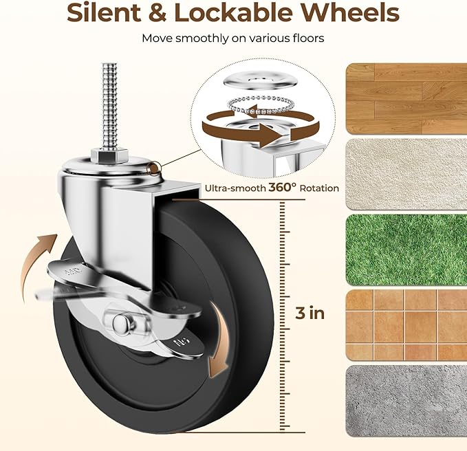 - Smooth &Secure Mobility: Premium lockable wheels (2 lockable) roll quietly & lock firmly for safety when stationary.