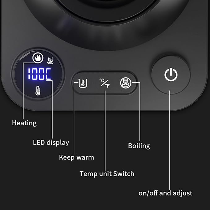 - 304 Stainless Steel Material: The electric tea pot is made of food grade 304 stainless steel. The pot body, lid, and spout are sturdy and durable, ensuring safe, reliable, and hygienic use
