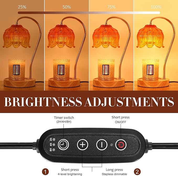- 【Smart Timer Function】The flower candle warmer lamp with Timer features three auto-shut-off options (2H/4H/8H), It maintains continuous scent diffusion throughout your sleep or daily activities, allowing you to enjoy uninterrupted fragrance without worrying about forgetting to "extinguish" the candle.