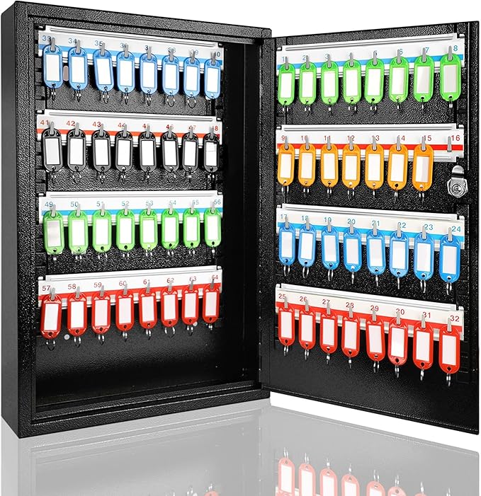 ORIENTOOLS Key Box Steel Key Safe Cabinet, Wall Mount Key Holder Lock Box with Key Tags, Key Organizer Ideal for Home, Hotels, Valets and Office Key Storage (64 Keys, Black)