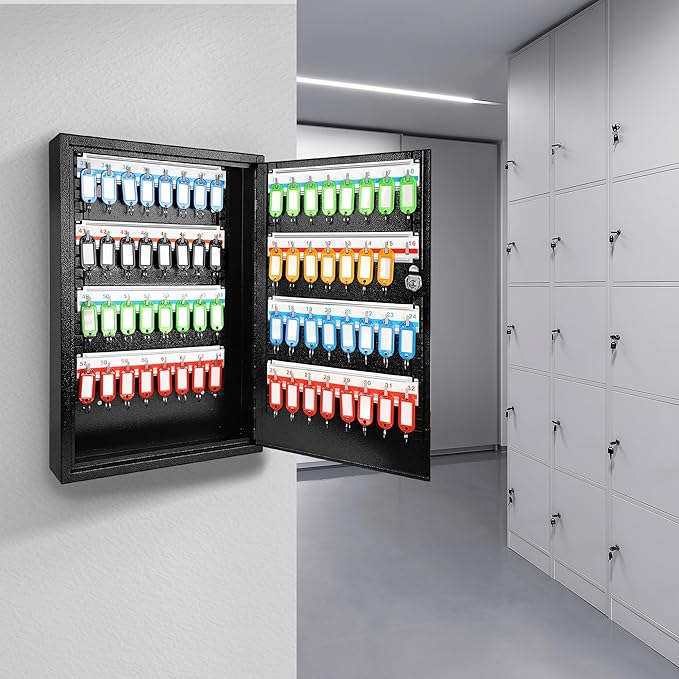 - Adjustable Key Shelves: Large capacity of 64 keys, adjustable key shelves, metal key hooks and premium quality locker can keep your keys safe and organized. You can install or remove the shelves to suit your needs, and you can also adjust the spacing between the shelves to make them fit the size of your keys.