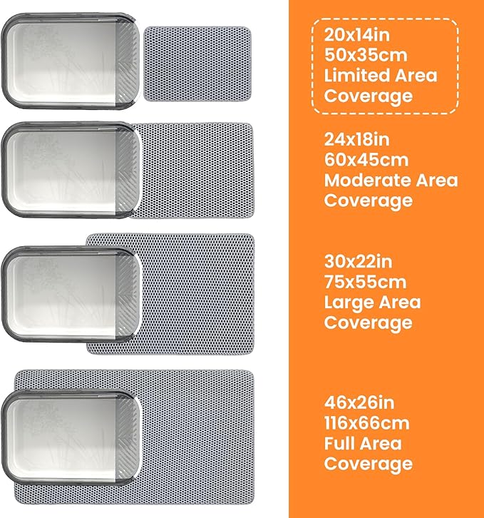 - Anti Tracking Litter Mat: This 20x14 inch small kitty litter mat is perfect for limited spaces and placement at the litter box exit. It traps every piece of litter to keep your home clean and odor-free. If your cat jumps out from multiple sides of the litter box, we recommend choosing a larger size for better coverage.