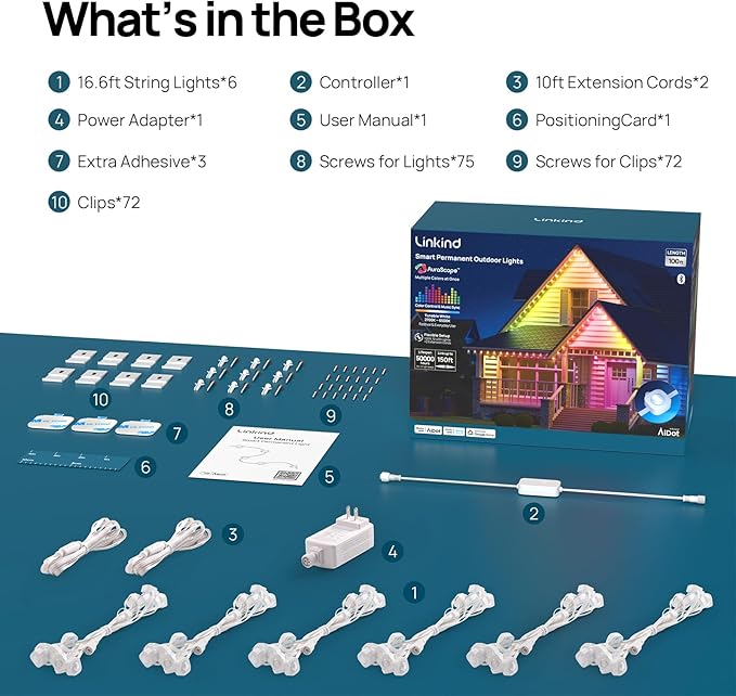 - 72 Triple-LED with Vivid Illumination: Each light integrates RGB, warm and cool white LEDs, providing versatile colors embiance.With up to 50lm brightness per light and an adjustable color temperature range from 2700K to 6500K,Linkind outdoor lights do more than holiday lighting, also creating the ideal atmosphere for daily and accent lighting.