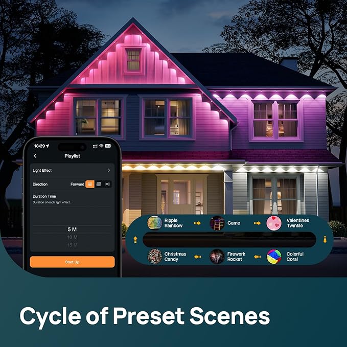 - Creative Control with DIY Mode & Special Schedule: Create custom DIY lighting sequences, sync the colors to the beat of your music for an instant party, or use the calendar scheduling feature to automate your displays daily or for special events. Best choice of the Halloween decorations and Christmas decorations.