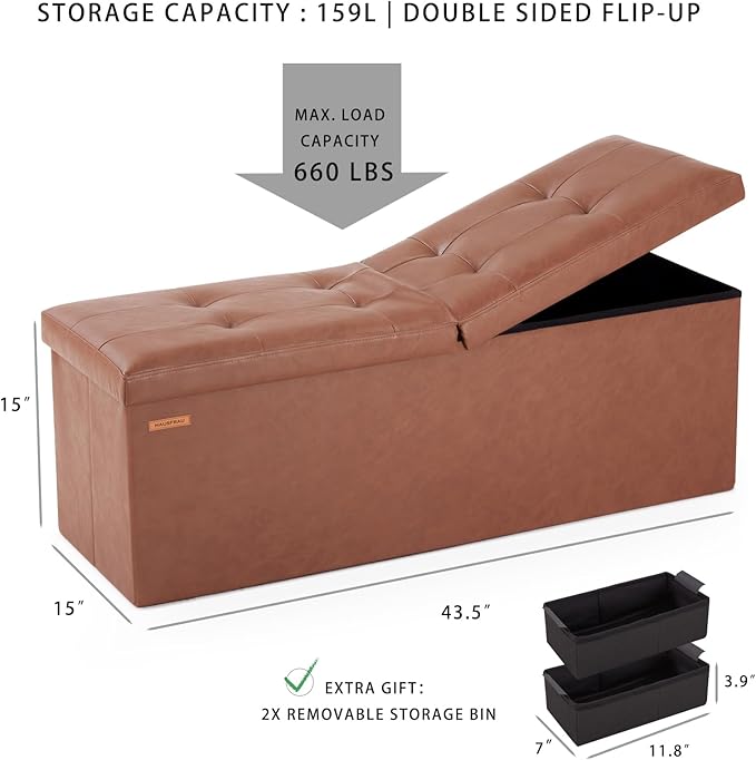 - Elegant & Chic Appearance: graceful lines, classical color and traditional-style tufts create a unique fascination, making this folding storage ottoman an real eye-catcher no matter where it is placed. Itβs suitable for bedroom, living room, entryway, dinning room, etc.