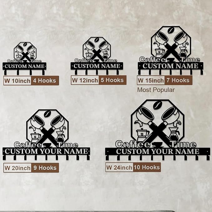 - Personalized Coffee Bar Wall Hooks Engrave names or messages on these Coffee Bar Wall Hooks ! Crafted from heavy-duty Metal Iron, they blend rustic charm with modern functionality for keys, towels, or kitchen aprons. A unique gift for coffee lovers celebrating housewarmings or anniversaries.