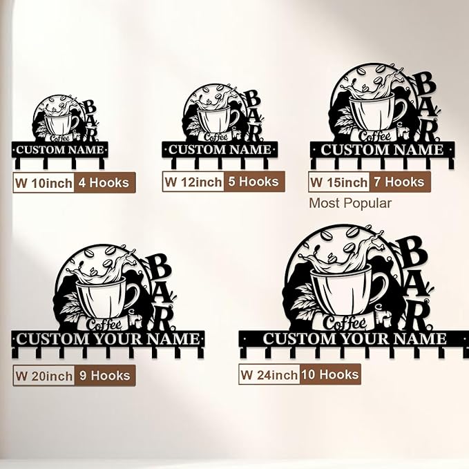 - Personalized Coffee Bar Wall Hooks Engrave names or messages on these Coffee Bar Wall Hooks ! Crafted from heavy-duty Metal Iron, they blend rustic charm with modern functionality for keys, towels, or kitchen aprons. A unique gift for coffee lovers celebrating housewarmings or anniversaries.