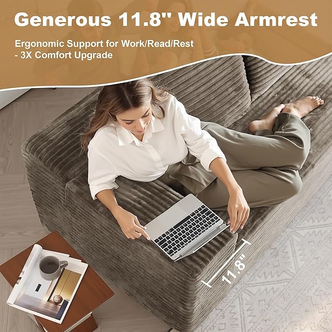 - Modular Sectional Sofa: Experience the ultimate in relaxation with this cloud couch–inspired L-shaped couch, designed for both comfort and style. Featuring clean lines, a sleek modular structure, and ultra-soft corduroy fabric, this sofa maximizes space while creating a cozy, inviting atmosphere. Perfect for living rooms, apartments, or bedrooms, this corner sofa adds a timeless, sophisticated touch — making your space feel warm, inviting, and truly your own. Bring home comfort and style that you’ll be happy with every day.