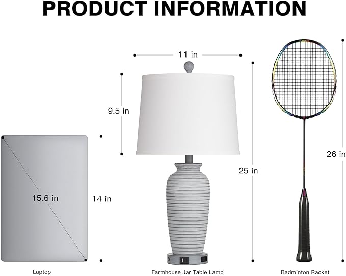 - 【Farmhouse Table Lamp】The size is: 25*12.5*9.5 inch. Made of high quality resin, and finished in a natural white linen lampshade. The touch lamp for nightstand is perfect for living room side table or bedroom. Add modern charm to your home or office