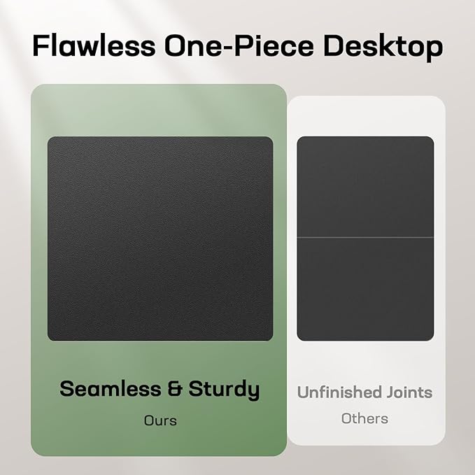 - Seamless One-Piece Surface: With its large 55" x 30" one-piece desktop, this standing desk offers a streamlined, joint-free work surface that elevates your workspace aesthetics and is easy to wipe clean in seconds