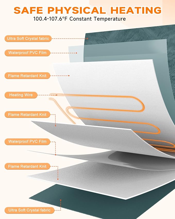 - Waterproof & Moisture: Soft PVC envelope enclosure with waterproof, clean heated cat mat with damp cloth, soft removable cover is machine washable, Do not immerse in water
