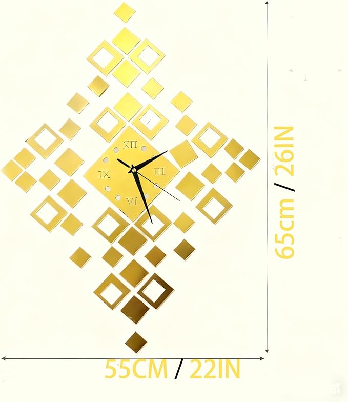 - MODERN DESIGN: Elegant geometric pattern wall clock featuring diamond-shaped elements in a stunning gold finish creates a sophisticated statement piece for any room