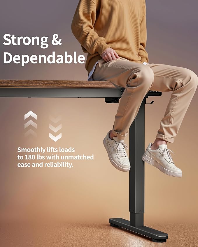 - Stable & Sturdy Design: This electric standing desk boasts a powerful motor that lifts at 0.8" per second and has been rigorously tested 20,000 times. This office desk cold-rolled steel frame supports up to 132 lbs, with a recommended daily use capacity of 180 lbs