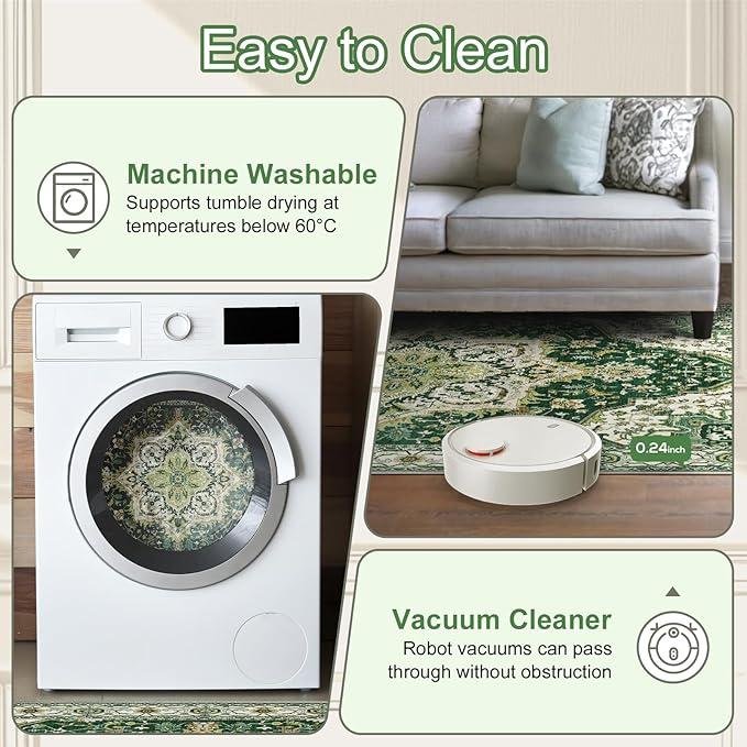- 【Machine Washable & Easy to Clean】This low-pile rug suits households in various regions and is perfect for all seasons.It can be easily cleaned with a vacuum or carpet brush to eliminate pet hair and dust. The moderate thickness won't obstruct robot vacuums, and it can even be machine washed for a deep clean (supports tumble drying below 60°C)