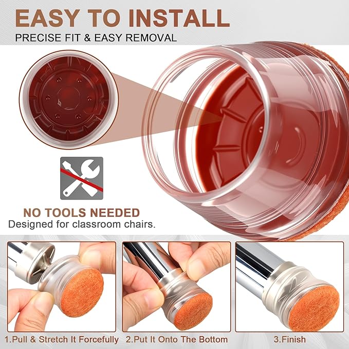 - Precise Fit and Easy Installation: with a height of 1.08 inches and a bottom outer diameter of 1.26 inches, these chair leg covers are highly elastic and specifically designed for classroom chairs; It is easy to install and remove (no cutting or gluing tools are required); Just put it on the bottom of the chair leg; Save time and energy for teachers and school staff