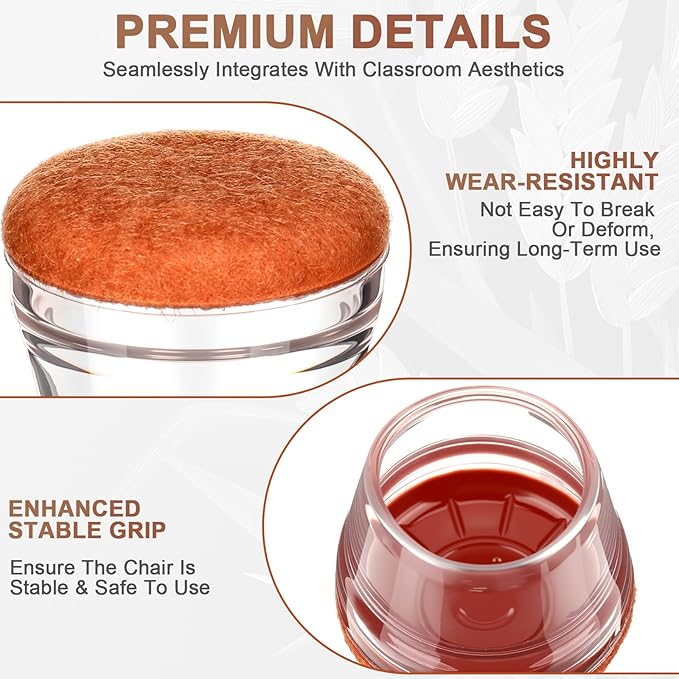 - Long-term Protection: these chair leg pads are highly wear-resistant and anti-aging; They are not easy to break or deform, ensuring long - term use; The felt at the bottom gently protects classroom floors, whether they are wooden or tiled, effectively preventing scratches and abrasions; This helps to extend the service life of the floors and reduce the school's floor maintenance costs