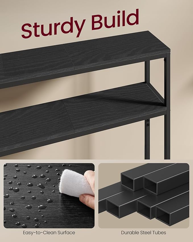 VASAGLE Console Table, 2-Tier Narrow Sofa Table with 2 Shelves, 7.9 x 31.5 x 31.5 Inches, for Living Room, Hallway, Entryway, Charcoal Gray and Ink Black ULNT130B22V1