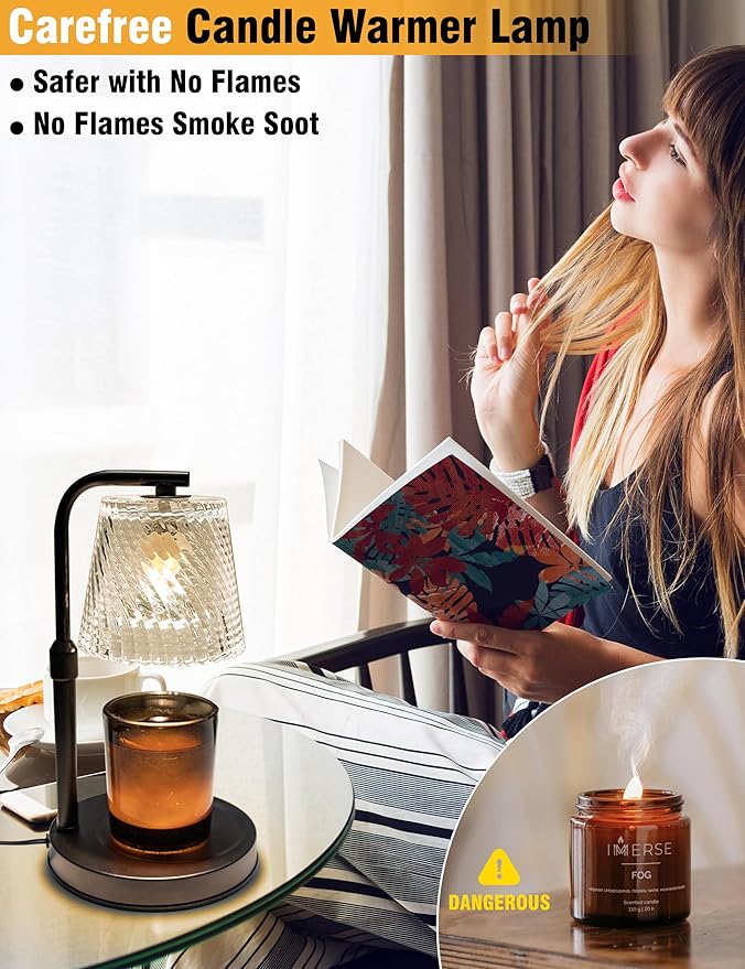 - Safety and Clean: Enjoy scents without lighting candles: Our electric candle warmer lamp melts candles from the top down, ensuring every bit is used with no waste. With no flames, smoke, or soot, it’s perfect for homes with kids and pets. This wax melter lets you enjoy candles safely while creating a cozy atmosphere in your living room, apartment, or office.