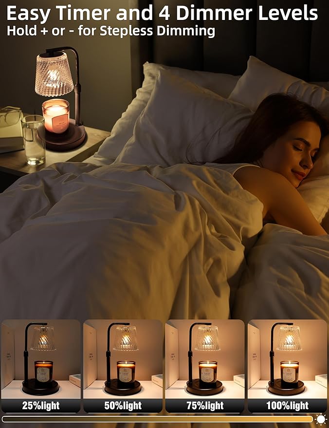 - No Worries About Leaving Candles Burning: Our candle warmer has a 3-setting timer (2/4/8 hours) that saves wax and improves the smell. The auto shut-off feature allows you to leave without concern. It’s perfect for the bedroom, letting you enjoy the scent and sleep peacefully without getting up.