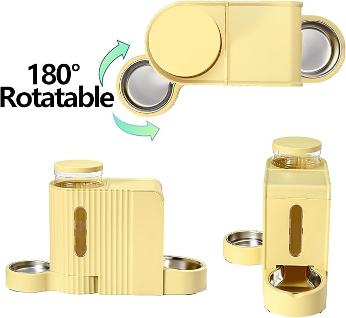 - 2 in1 New Design Automatic Cat Feeder and Water:Gravity automatic cat and dog food feeder and water dispenser set with stainless steel bowl,The bottom of the cat feeder has been upgraded with a movable stainless steel bowl to keep food fresher and easy to clean, not easily deformed, not rusty,sturdy and sanitary. Our automatic cat feeder and water system combines a gravity cat feeder and water dispenser, offering busy pet owners an efficient way to ensure their furry friends have consistent access to food and hydration