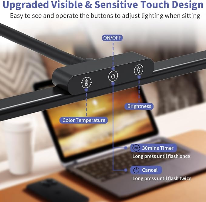 - 【Stable Base fits for all tabletop】This tall desk lamp comes with metal heavy base allows it stand on any kind of tabletop firmly and it takes up little desk space, ideal for dual monitors, cured wide monitors or L-shape multi tasks desk.