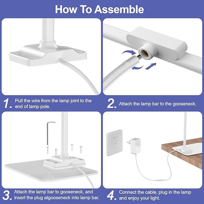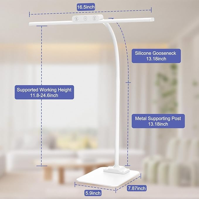 - 【Highly Flexible Goose-Neck】Its long goose-neck supports flexible working height up to 24.6-inch, which can hold the lamp heads over the monitor or bring closer to the work surface, it casts enough light for you to see what you’re working on clearly.