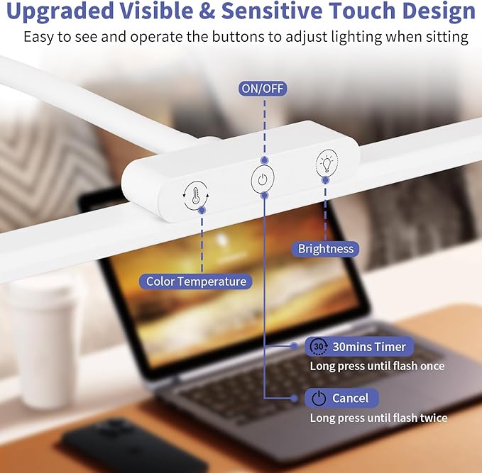 - 【Stable Base fits for all tabletop】This tall desk lamp comes with metal heavy base allows it stand on any kind of tabletop firmly and it takes up little desk space, ideal for dual monitors, cured wide monitors or L-shape multi tasks desk.