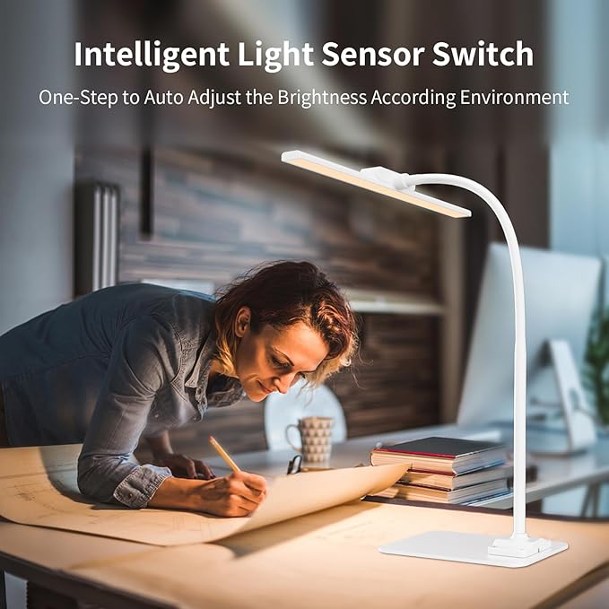KableRika LED Desk Lamp with Base: Bright Desk Lights for Home Office - Eye Care Reading Table Lamps - Dimmable Desktop Lighting for Computer Monitor Study Drafting White