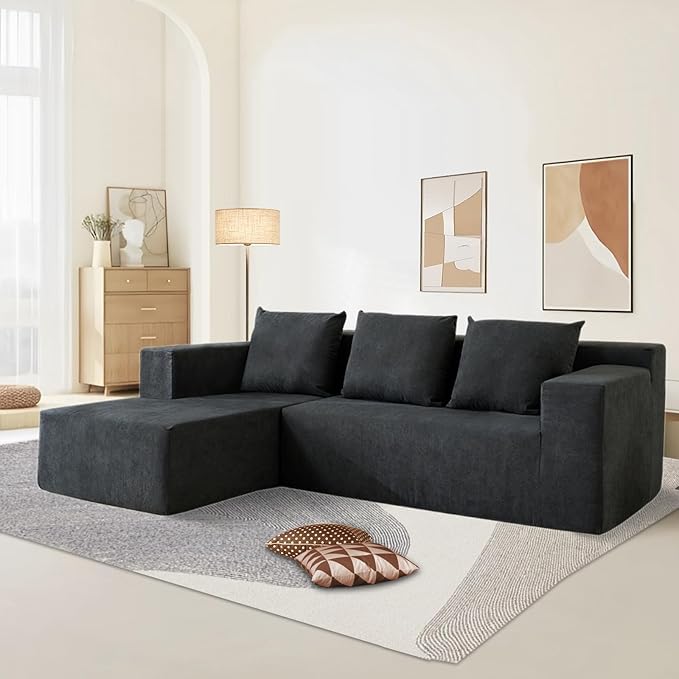 - Modular Sectional Sofa: Discover the pleasure of configuring our minimalist modular sofa as you wish! Versatile and highly flexible, this minimalist sectional sofa set is designed to meet your needs. The L-shaped couch optimizes space, especially when placed against a wall. Consisting of two chic pieces, this living room sofa set offer to make your own style and comfort