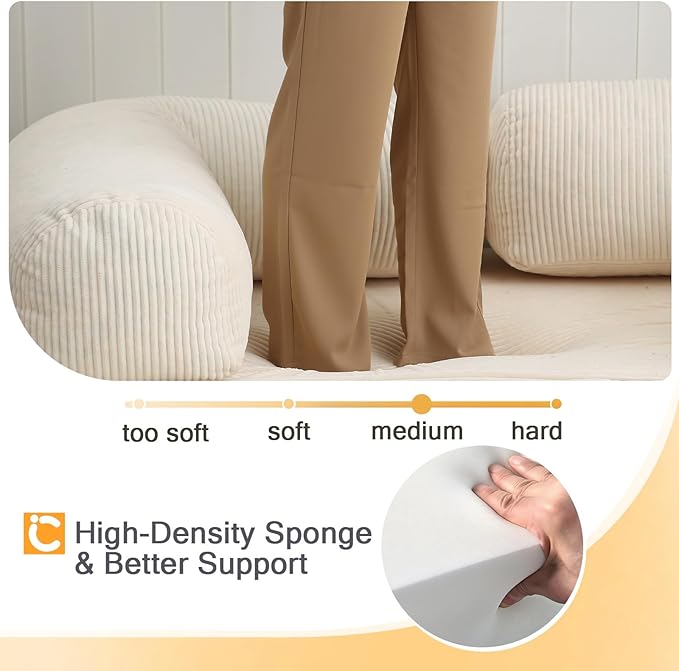 - Removable & Washable Cover: Features a soft, breathable corded fabric in an elegant beige tone; the cover unzips easily and is machine washable, making it simple to keep your sofa fresh, stylish, and clean for everyday comfort and long-term use
