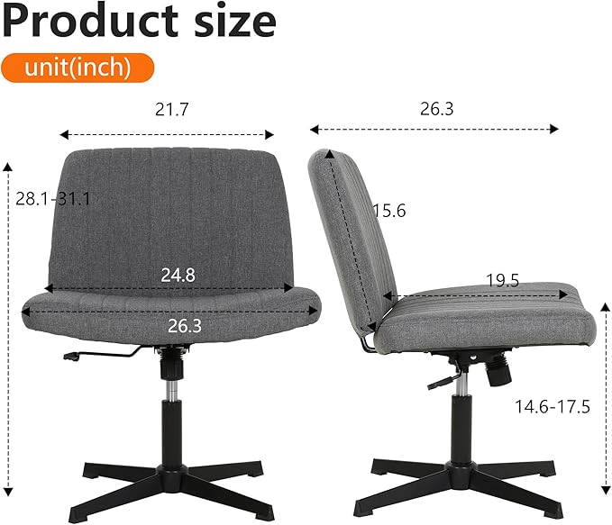 - Wide & Soft Seat Size : This cross chair dimensions are H28.1-31.1*W26.3*D26.3 INCH.The seat is wider , allowing users to sit cross-legged.The backrest and seat of this desk chair are padded with high materials and native sponge for a lengthy , comfortable sitting experience.