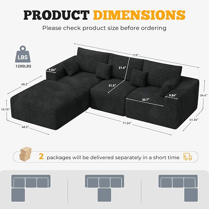 - Always By Your Side: Luxanimarion sectional couches for living room will come in 2 boxes and they may not arrive at the same time. If you have any problems about the living room sofa couch, please don't hesitate to contact us, we will give you the most professional guidance and provide you with the best shopping experience