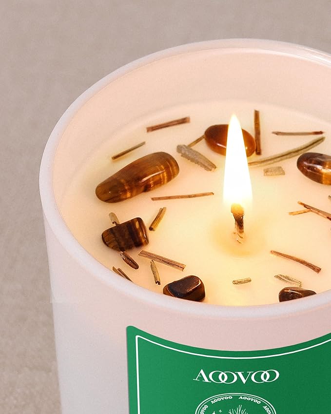 AOOVOO Cedar Scented Candles for Women - Aromatherapy Candle with Crystals Inside, 10oz Soy Candles for Home Scented, Birthday Gifts Christmas Candle for Women Mom