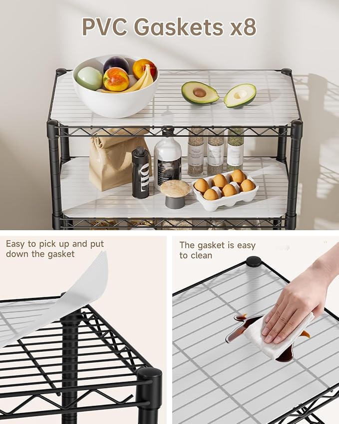 8 Tier Shelves Storage Shelf Wire Closet Bathroom Organizers Metal Pantry Kitchen Garage Shelving Unit Laundry Room Organization Home Rack Net Basket Black with Wheels 12”D X 22”W X 74.2”H