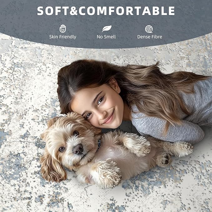 - Kids and Pets Friendly Rug: This vintage floor carpet designed with both pets and children in mind, the dining room rug prevents pet hair accumulation,making it easy to maintain.It's durable and easy to care for.Plus,its soft texture provides a comfortable and safe play area for little ones