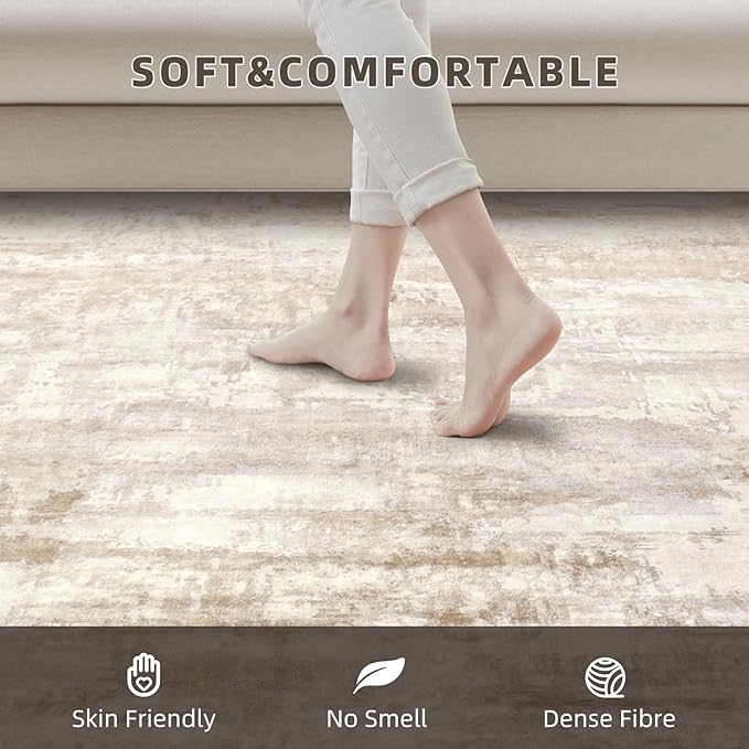 Washable Rugs 8x10 Area Rugs for Living Room - Modern Abstract Rugs for Bedroom,Dining Room,Large Soft Low Pile Carpet with Non Slip Rubber Backing,Neutral Accent Nursery Rug- Yello Brown