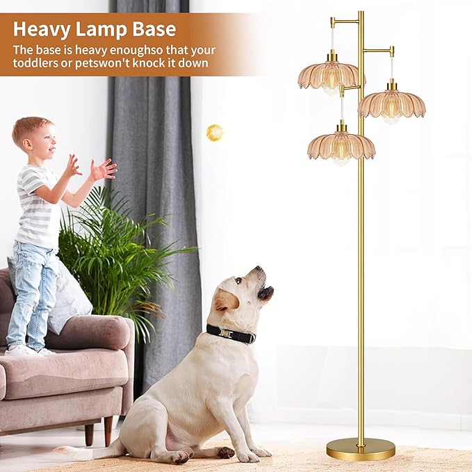 - 【Included Bulb】 Flower floor lamp for living room contains three led bulbs,You do not need to buy additional bulbs,and tree floor pole lamp have a heavy metal base,is designed to keep you and your family safe at home